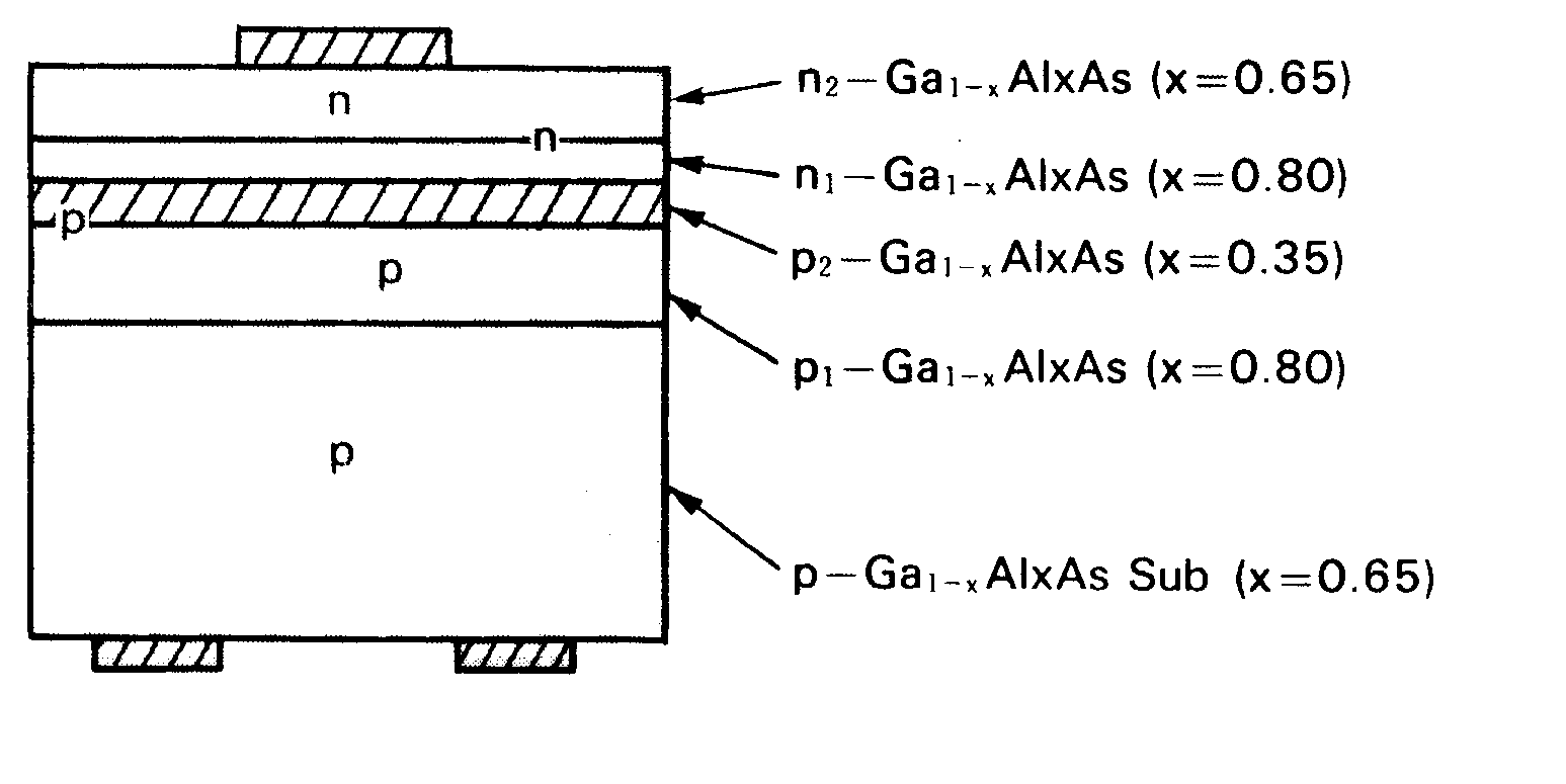 El constituido por GaAsP consiste en una capa p obtenida por difusión de Zn durante el crecimiento de un cristal n de GaAsP, formado en un substrato de GaAs, por el método de crecimiento epitaxial en fase gaseosa.